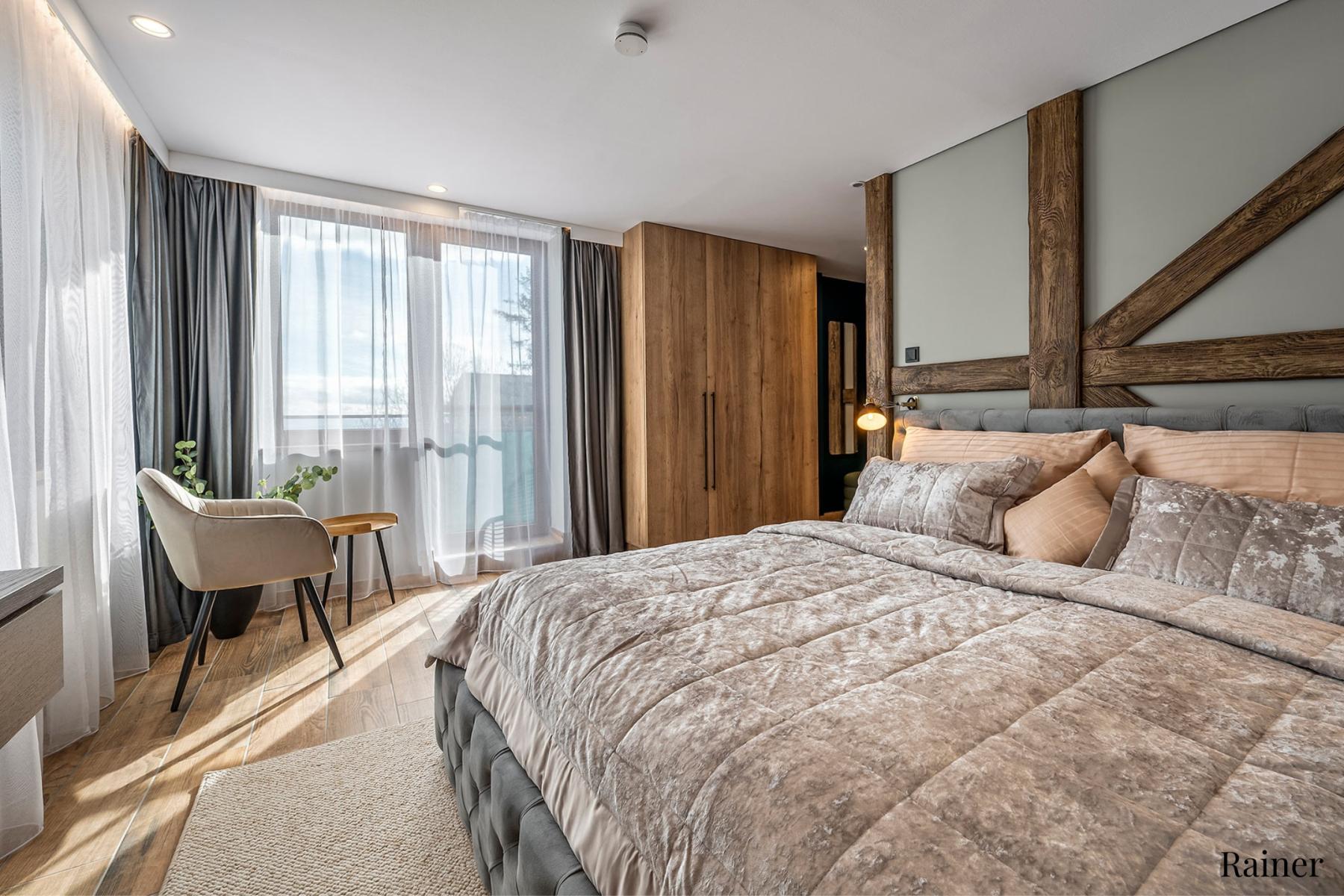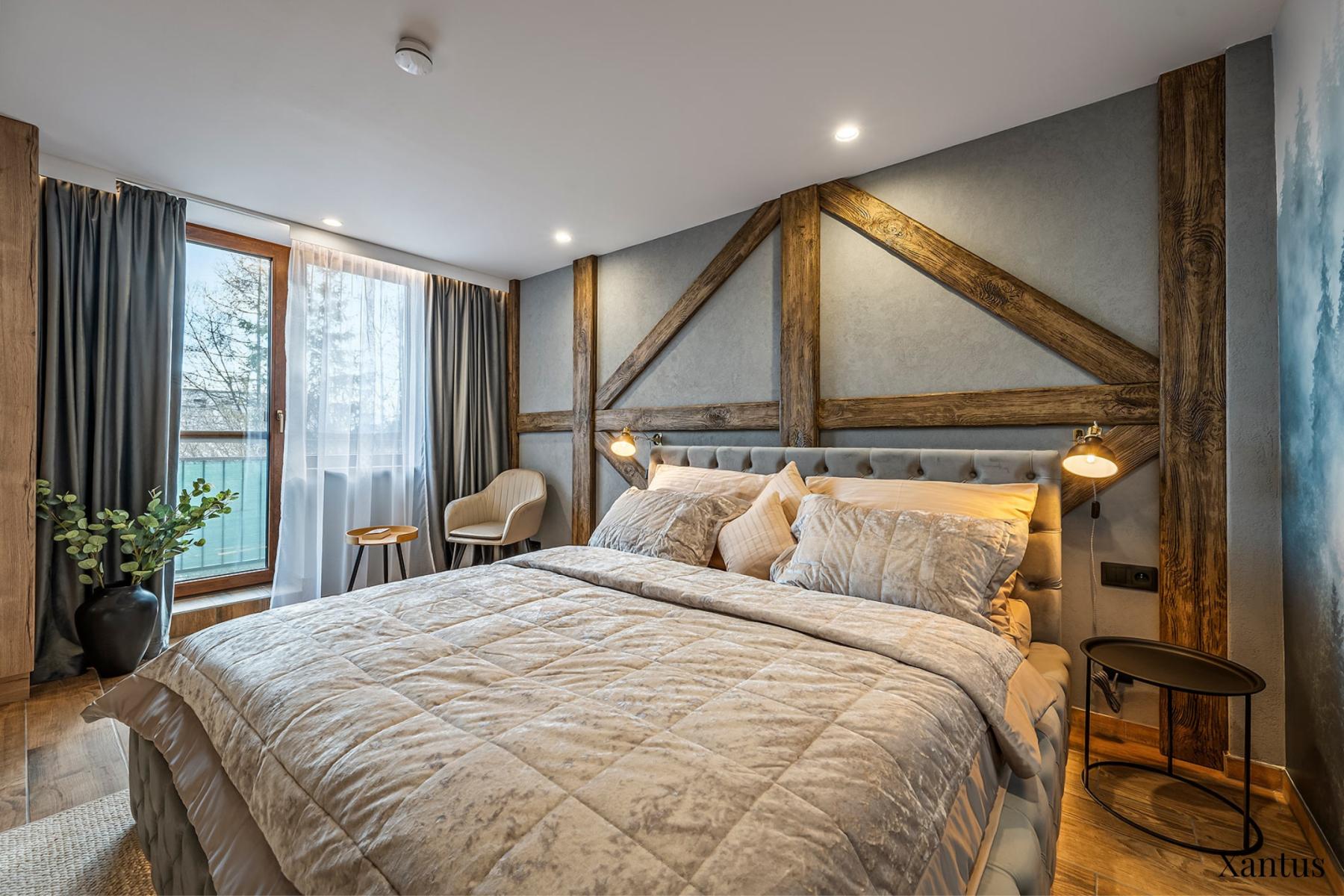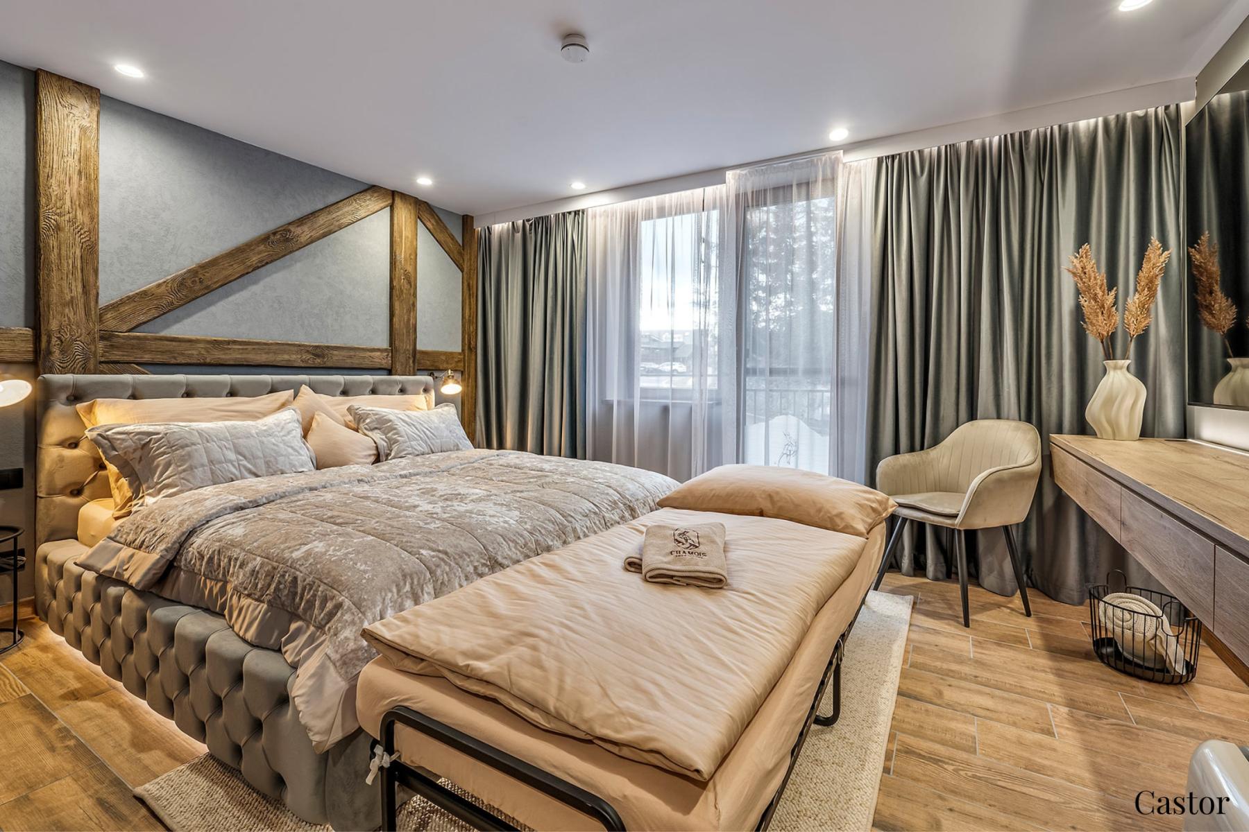 Kényelem két főnek: Minden apartmanban king-size ágy és éjjeli szekrény található.