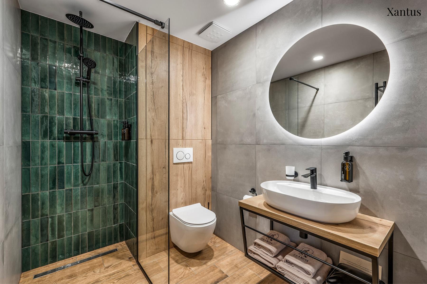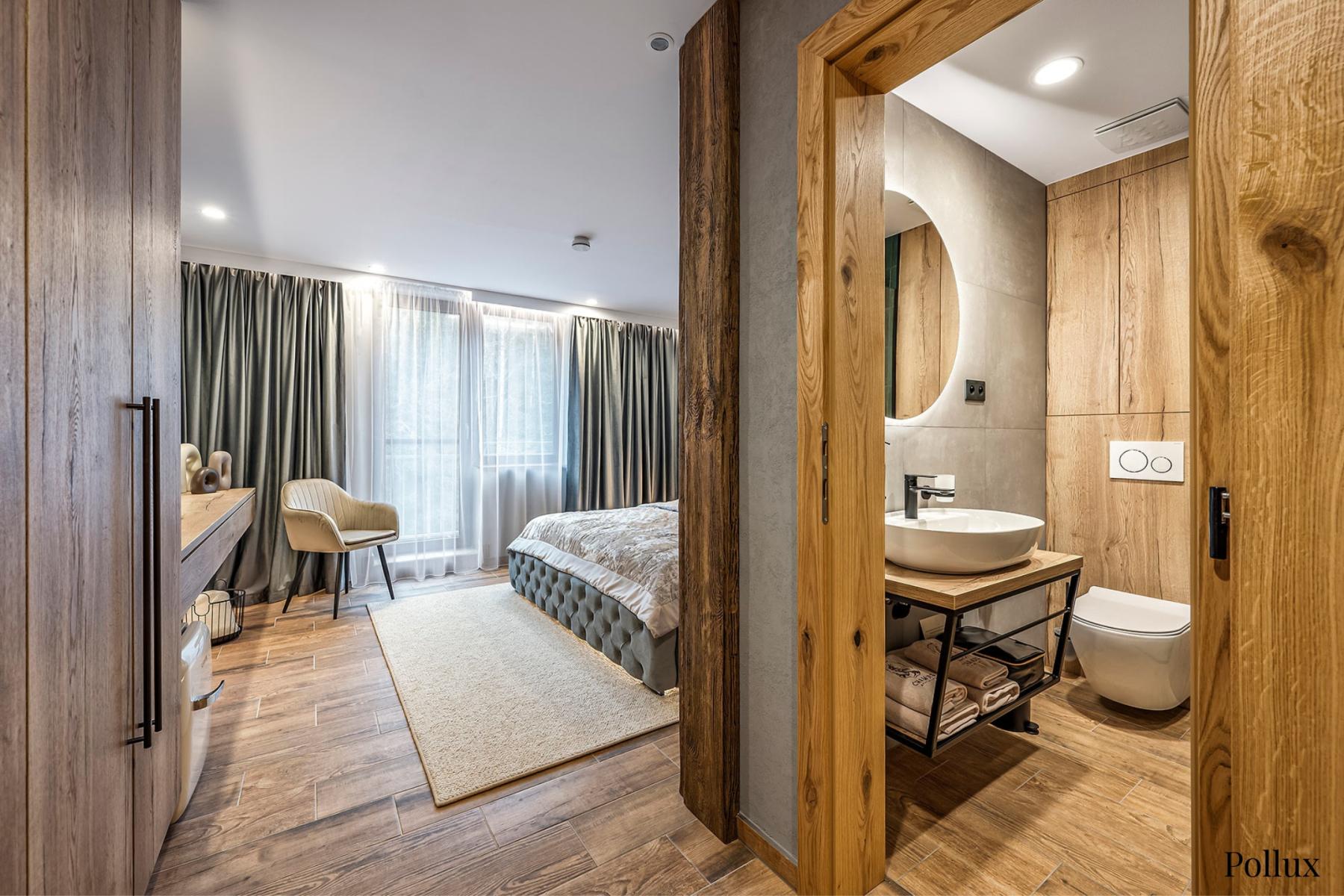 Fürdőszoba: Minden apartman saját fürdőszobával rendelkezik zuhanyzóval, WC-vel, mosdóval, törölközőkkel és természetes kozmetikumokkal.