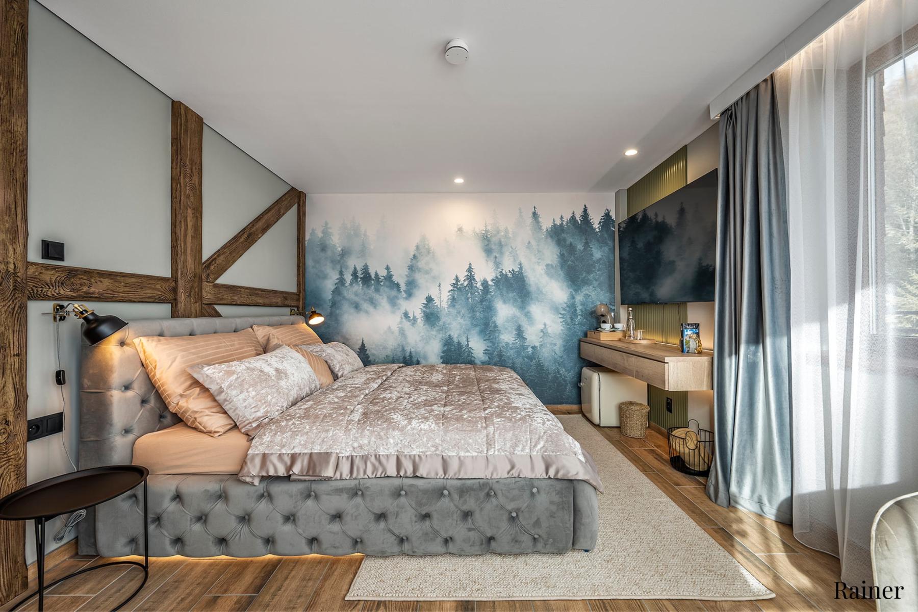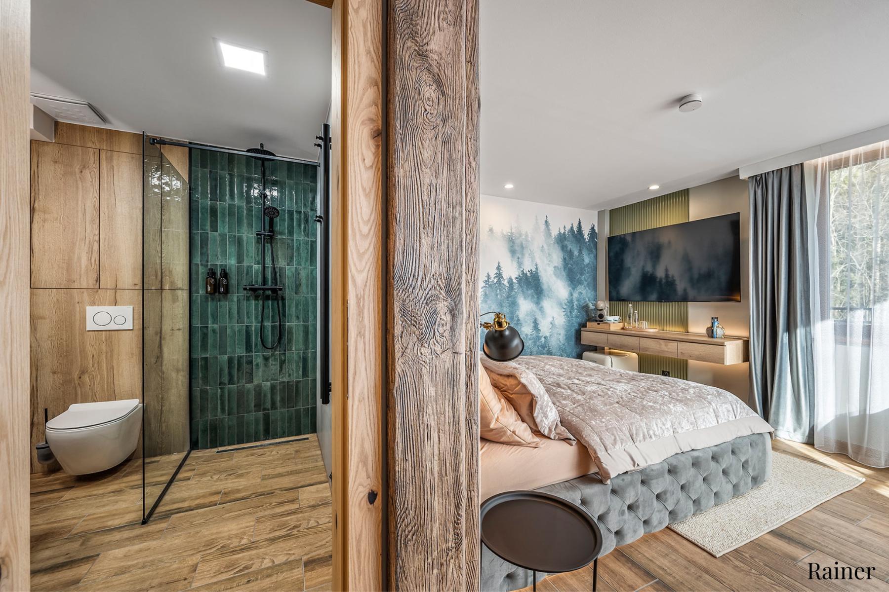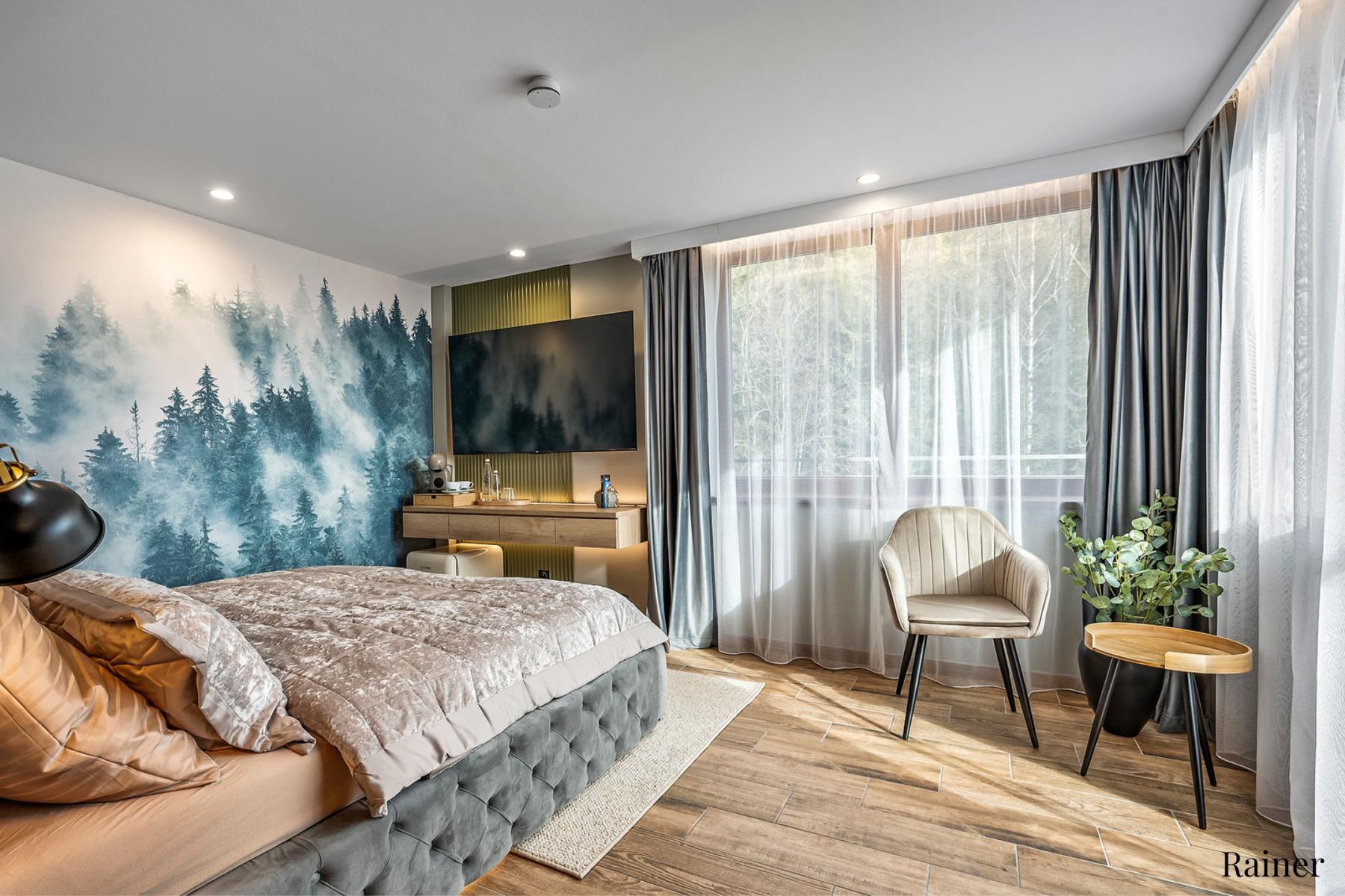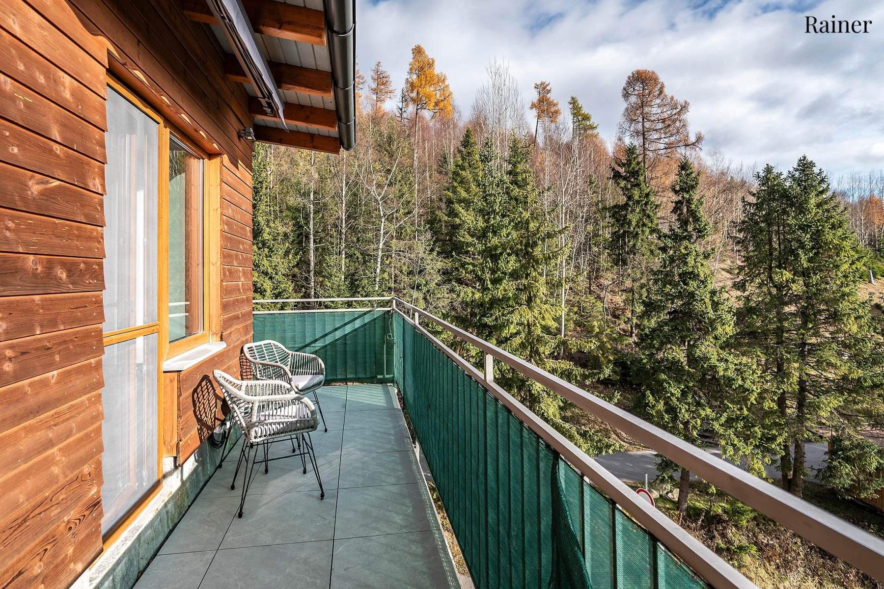 Pihenés kilátással: Minden apartman erkéllyel rendelkezik, gyönyörű kilátással az erdőkre és a városra.